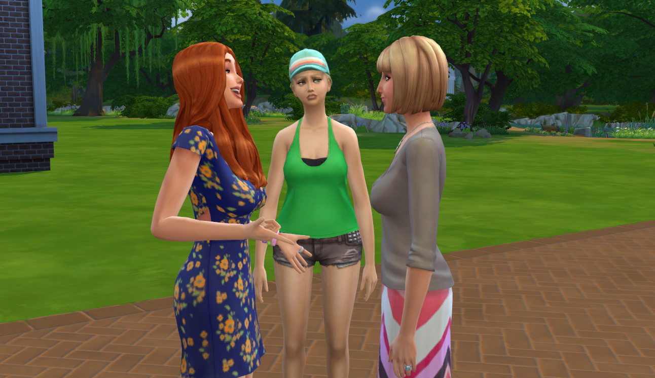 Sakura came home from school early one morning and aged up into a teen! She gained the jokester aspiration as well as the trait of clumsy. Aunt Kaida walked by shortly after (as well as this other woman) so Sakura decided to introduce herself to the newcomer.