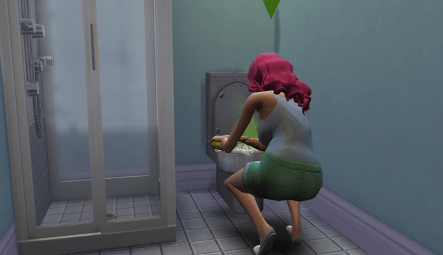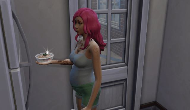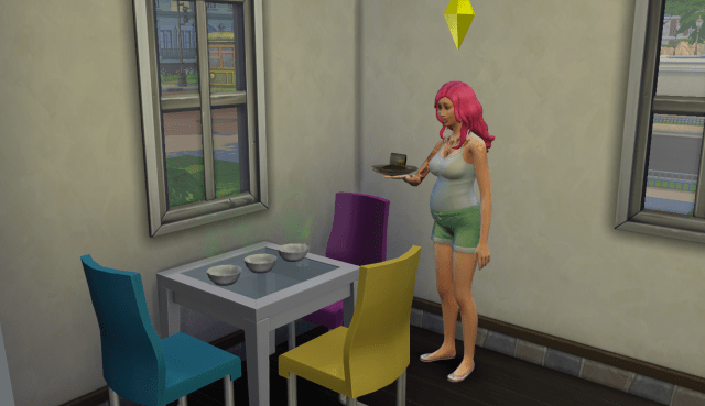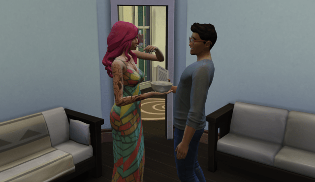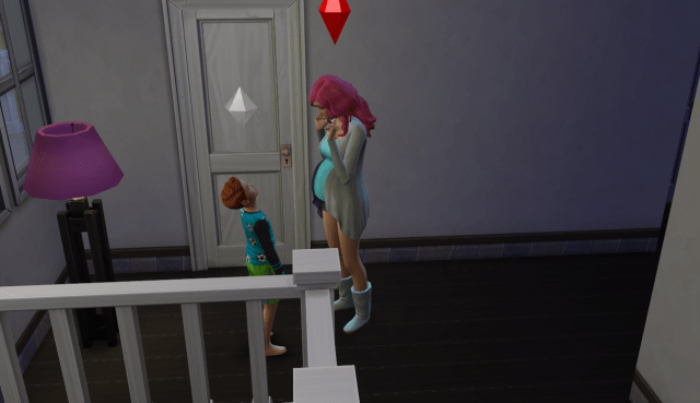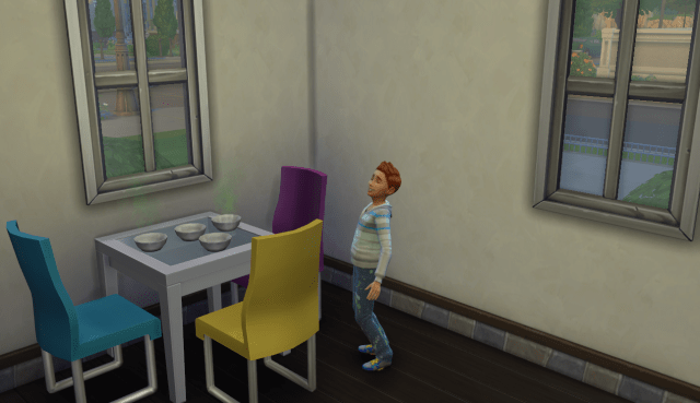 Later, Eva broke the good news of her pregnancy to Bray (while eating, of course). He was pleased that they’d be having another baby soon. It hasn’t been challenging to have two non-controlled sims in the house so I’ll see how bad it is with a third one.
