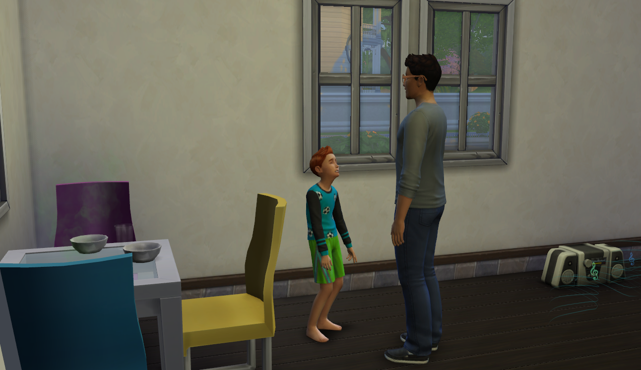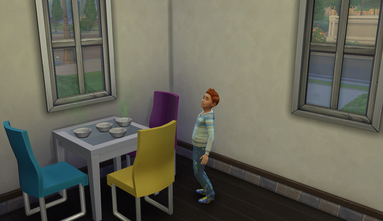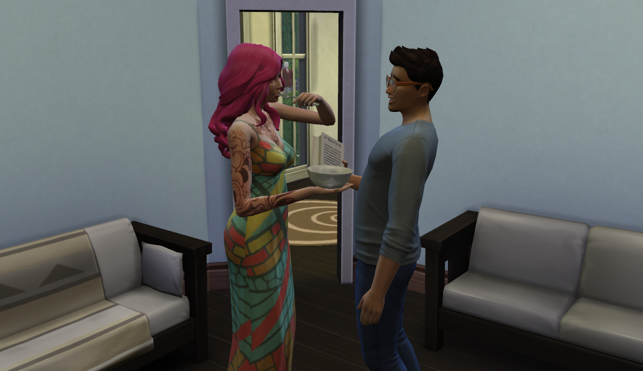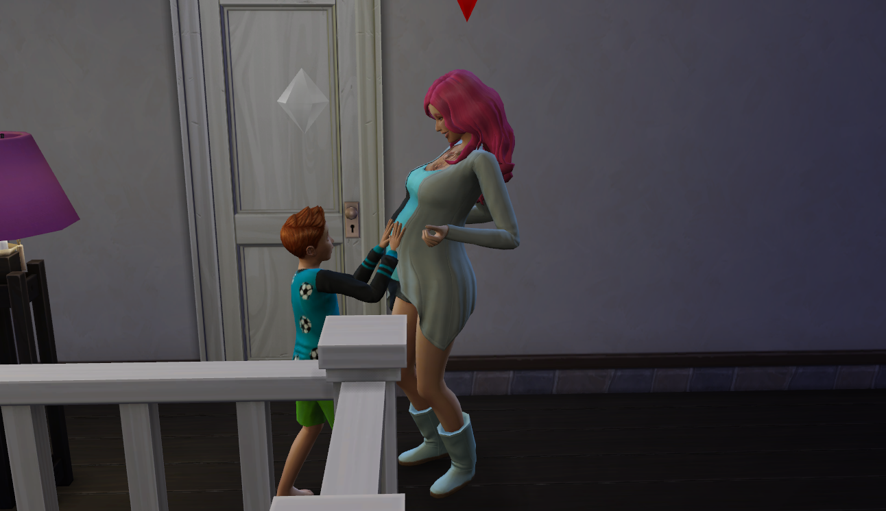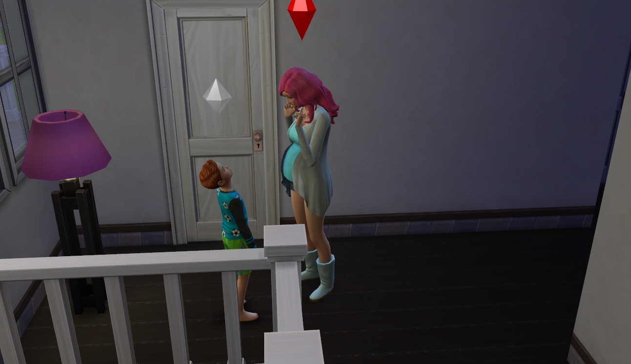 Later, Eva broke the good news of her pregnancy to Bray (while eating, of course). He was pleased that they’d be having another baby soon. It hasn’t been challenging to have two non-controlled sims in the house so I’ll see how bad it is with a third one.