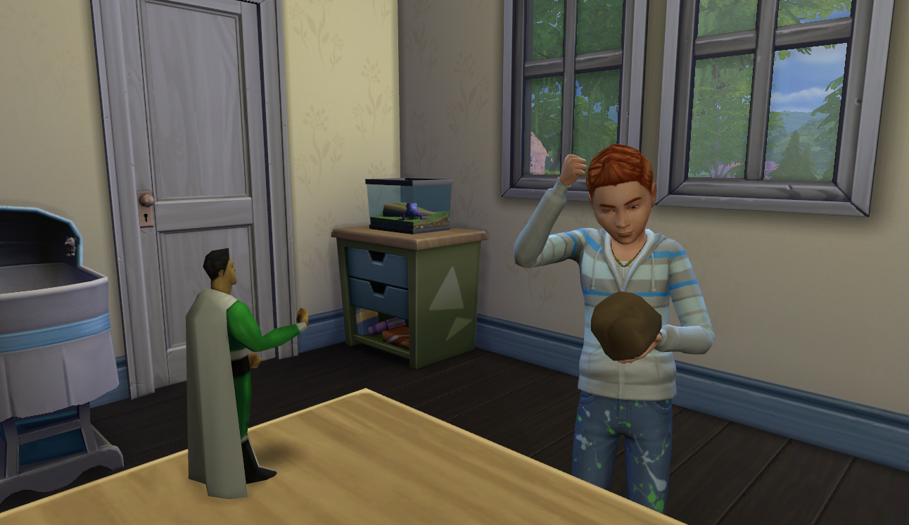 Ah, yes! Something that happily surprised me. I was just randomly checking on things in the house and saw Ben and Bray talking. Ben looked really displeased and I didn’t get to see what he was being spoken to about. Then I noticed that he immediately went to the trash bin and took out the trash. I think Bray was telling him to do some chores!