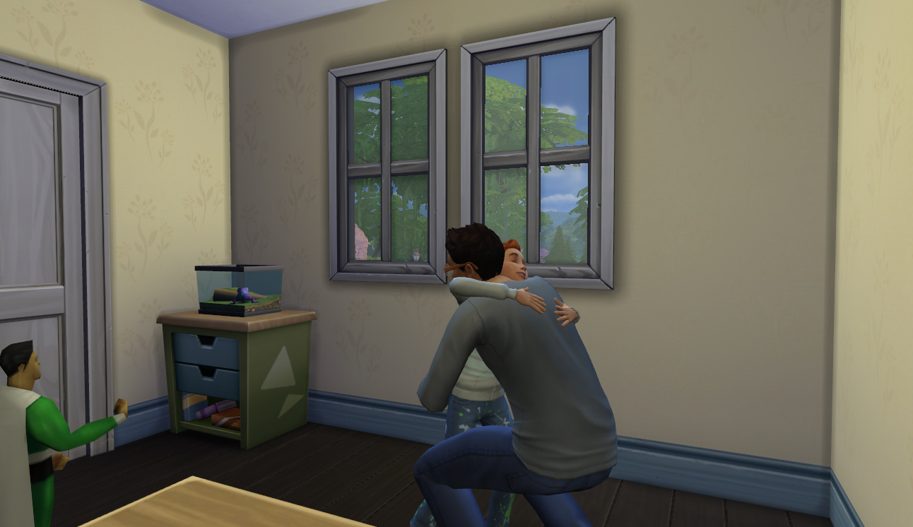 Bray went to bother Ben. Sims do enjoy random hugs or kisses. I really like that (except when they stay to wait until you’re done gardening. Nothing stops them from gardening).