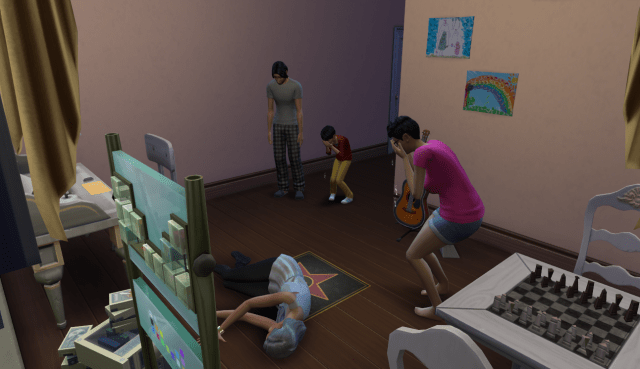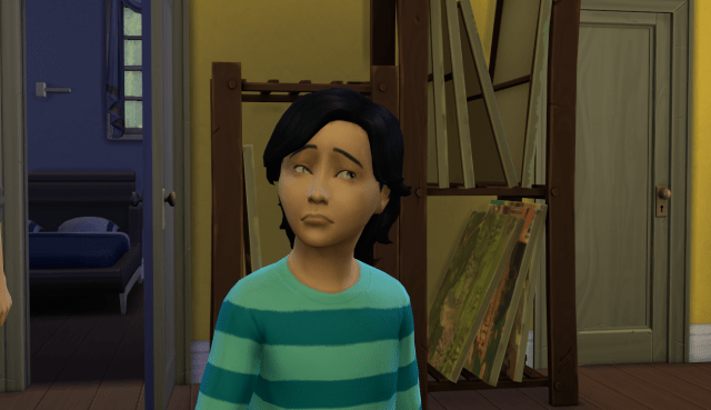 Tada! Hiro aged up and turned into a little cutie, per usual. He did roll a trait I was hoping to avoid: INSANE. He also rolled Whiz Kid like his brother so they can play each other in chess now. Bingo!