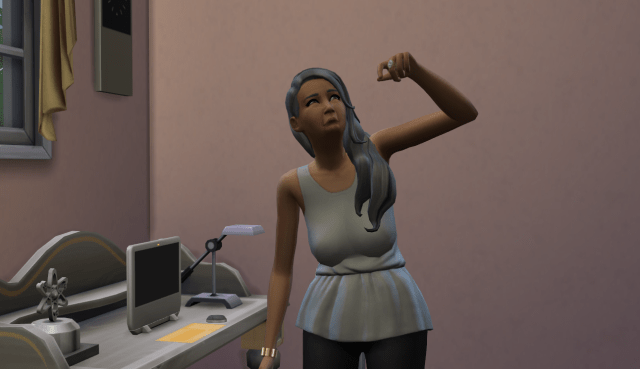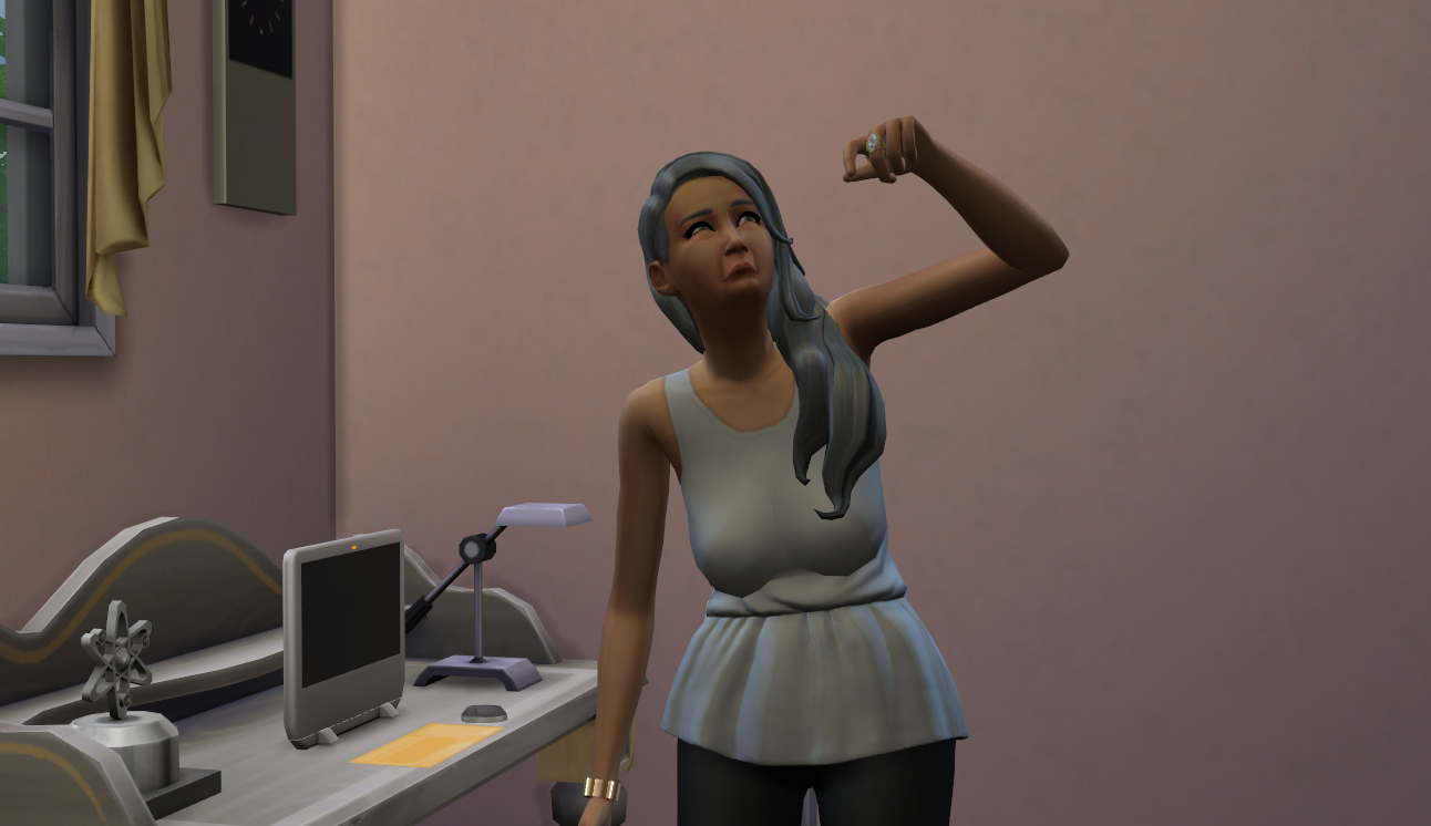 Maggie has been spending her days doing amazing things for the house and garden. She’s been evolving the plants and having stay-at-home Adriel learn the ins and outs of the garden. I figure he needs to learn the skill since everyone has been coasting on Maggie’s talents. This goes for handiness as well. Maggie also upgraded a TON of stuff. Almost all of the plumbing has the extra special perks (bidets, soap dispensers). The coffee and tea pots have the infusers installed. The oven and fridge got their advancements, too, and FINALLY the stereo, TV, and computer. Well, almost. Just as Maggie was about to start upgrading the computer I heard the ominous music start up.