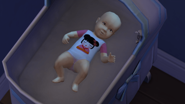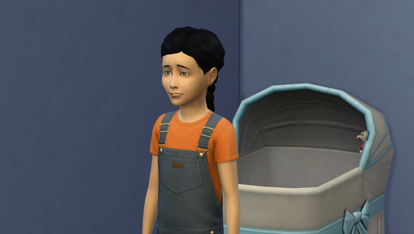 Time for Aya to age up! Looks like this family is going with dark hair this generation. (I was also pretty lazy for a while and didn’t want to change her outfit so I let her run around in overalls for a long time. Update: I just loaded up the game and she’s still wearing them. Oops.)