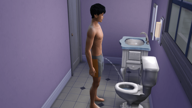 Here was something funny I noticed: I never paid attention but sims have streams of pee!