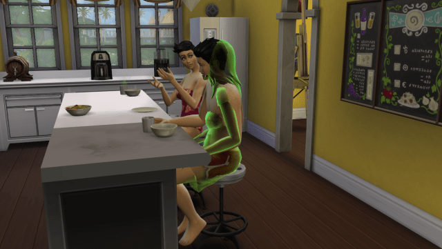 Hiro was less excited to see his dad. I guess some sims just don’t care for seeing ghosts all over the place.