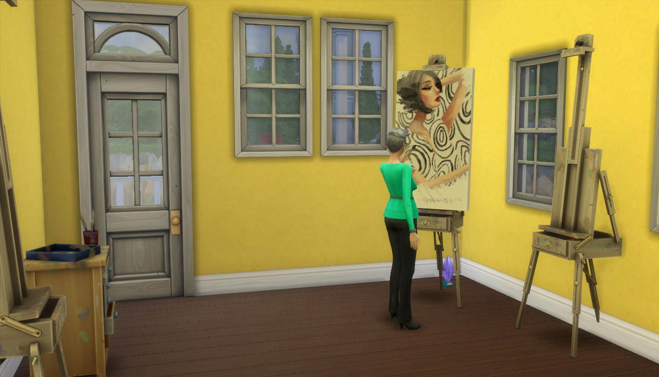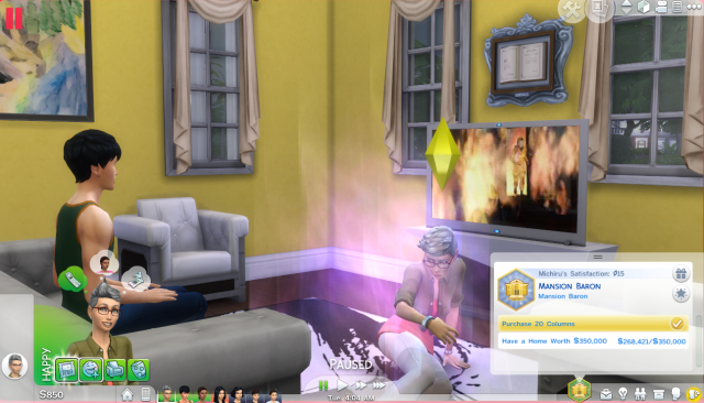 She’s also come so far in her second aspiration that I really want to make it happen. Mansion Baron is kind of hard. I managed to get them 20 columns but reaching $350K is HARD! I do NOT want to see these bills. At this point I don’t know if Michiru will make it. She’s painting like mad right now and Dani doesn’t work for three days. sigh