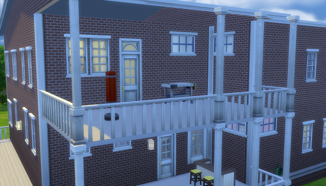 The porch coming off of the studio has the wood working table and the punching bag. It made more sense to have the workout equipment on the same floor. (Oh, that reminds me that they don’t have the other piece of equipment and I should buy it once they get a bit more money.)