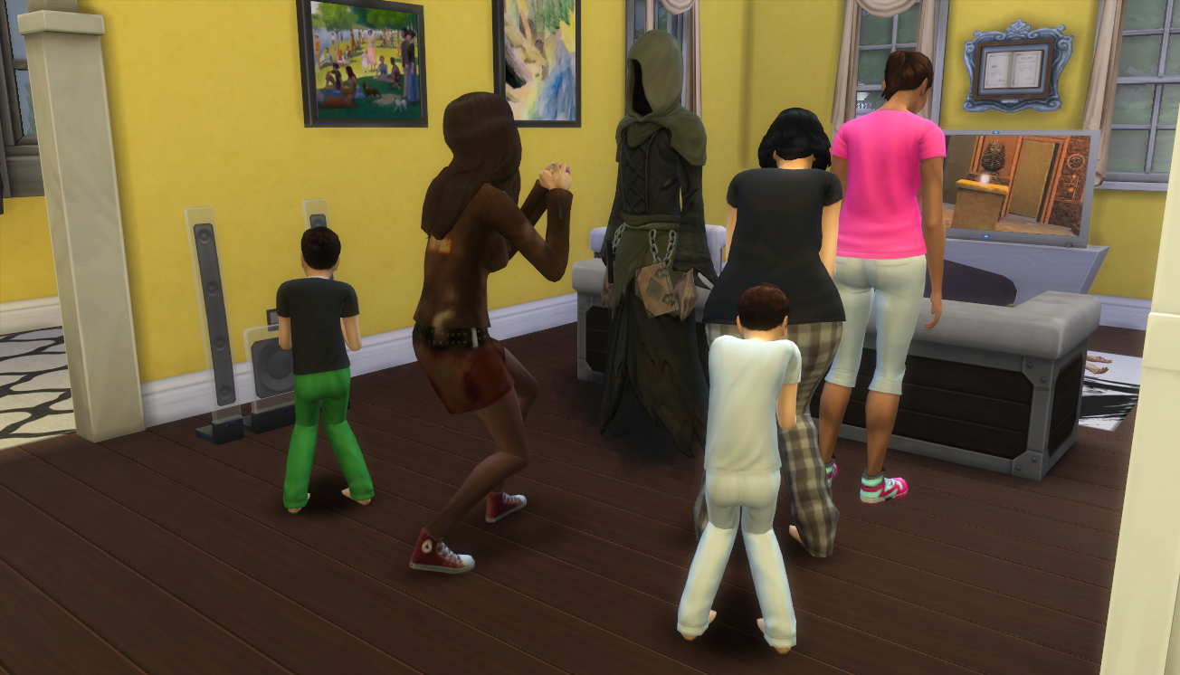 Well, I paused once that music started and I thought, maybe I could sell a bunch of paintings and buy something else and see if we could make it happen but, no, you can’t go into build mode during births and deaths, so… Disappointment. I had everyone come into the family room and soon all you could hear was crying.