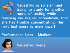 In kid news, Nade had a bad day at school. She got a lower score than she would have liked on her SDT (LOL, Sims Team…) and wanted to retake it. Her plan backfired.