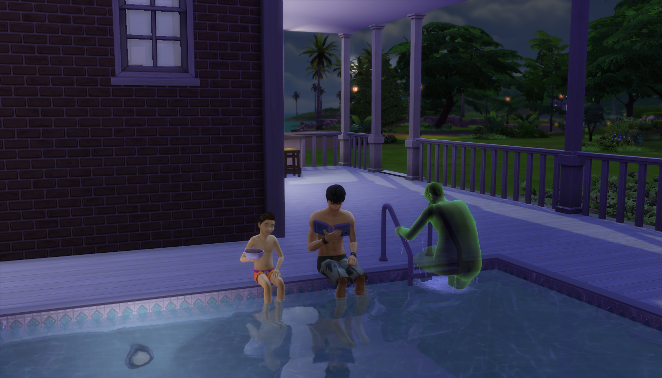After they solidified their destined friendship, the brothers went outside to sit by the pool and eat cereal. Why? Beats me; that’s just what they did. Tachi was still up, too, and he didn’t seem to mind that his children were awake at this hour.