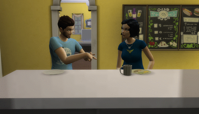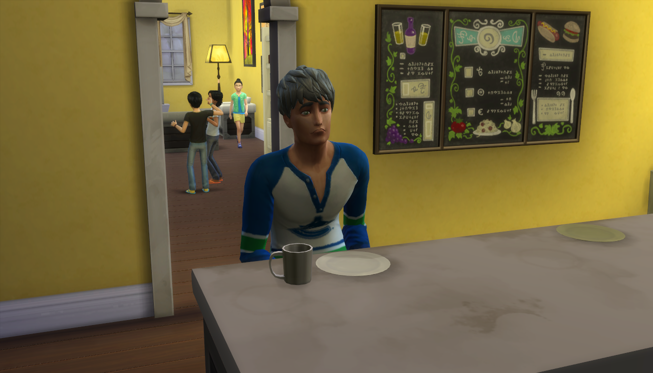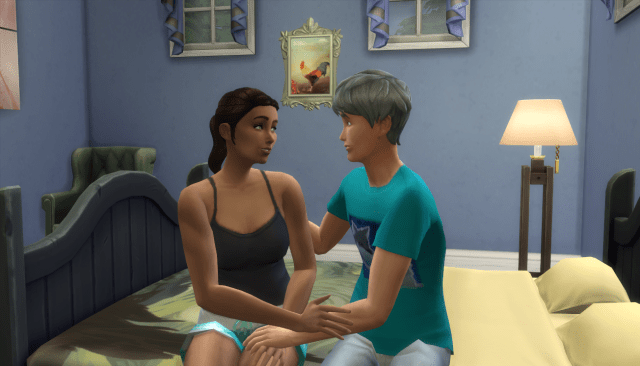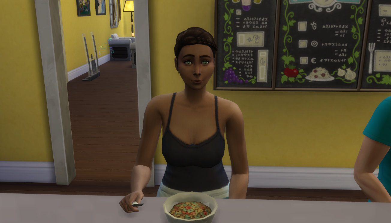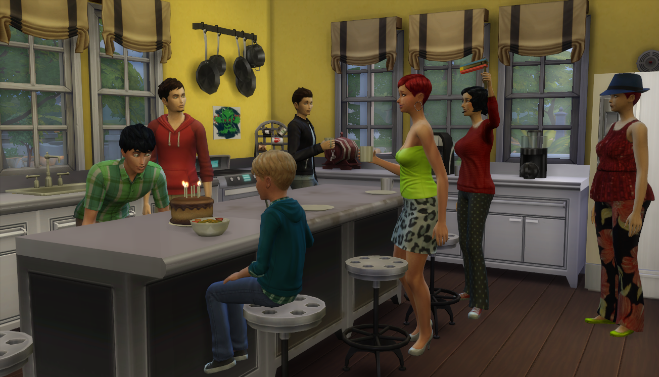 I noticed that Nadeshiko’s age bar was sparkling and panicked. It was 10 PM their time and I thought, maybe she’d make it! She started making a cake and conversed with her younger brother, Kyo, who was eating a late dinner. However, she stopped her baking right after mixing and aged into a young adult. (Fail, Megan.)
