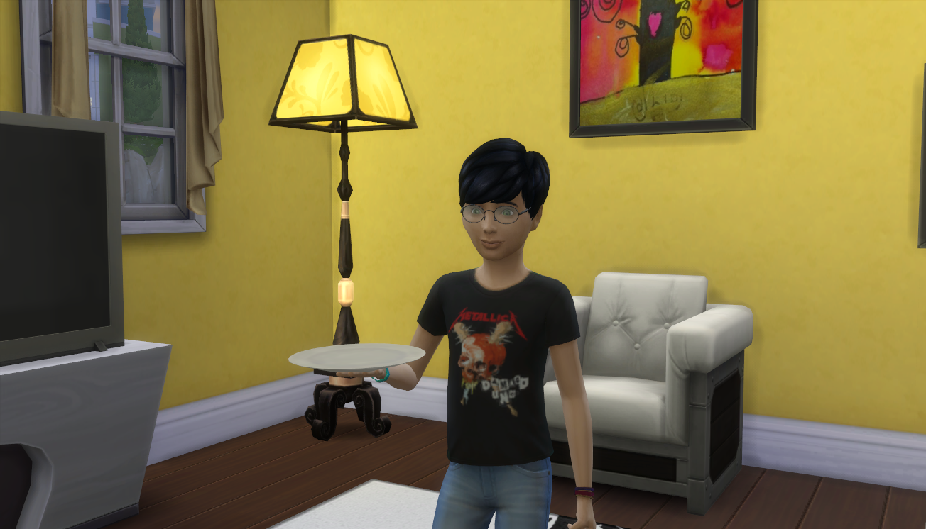 Now for that baby… Ren aged up! He sort of grew up invisible (???) so I had to exit the house for a minute and then come back in. He was there when I came back and he was adorable. Sim children with glasses are so cute.