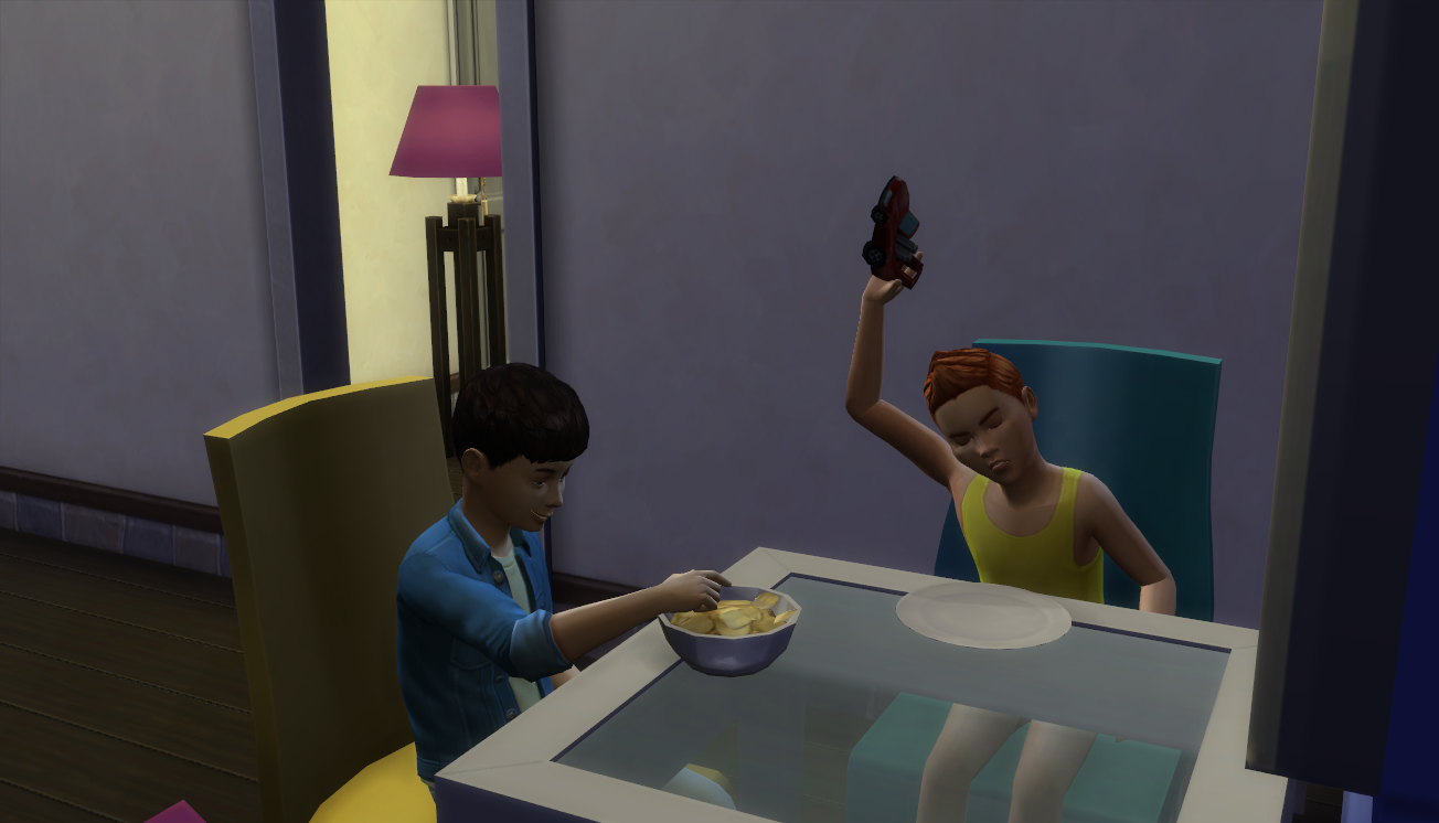 As for the boys, it’s chips and race cars for breakfast. Very nutritious. I’m starting to wonder if Ben’s upcoming birthday will change their brotherly dynamic…