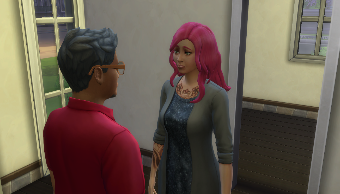 At this point, we’re caught up to where I left off back in November. I was surprised to see Eva looking upset. However, I think they had just come home from work. She’s never happy after work (who is?).