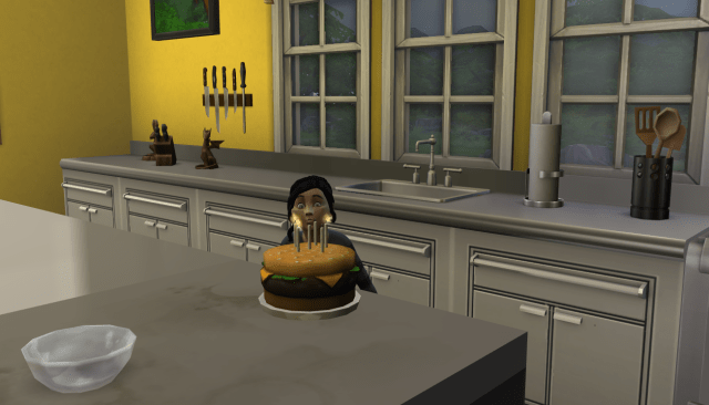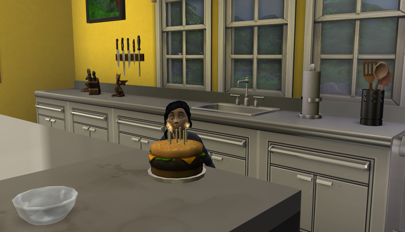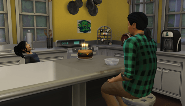 There was no way for her to get to 10 before aging up so I had her dad make her a lovely hamburger cake around 10 PM. I never know when they’re gonna pop so I crossed my fingers that she wouldn’t age up before.