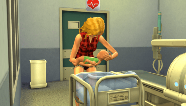 As this was the first baby since installing GTW, I decided to check out the hospital! (AN: “check out” as a patient, I mean. I made another sim to play around with the new career – her name is Nurse Cecelia Cooke and she’s adorable. That’s another story…)
