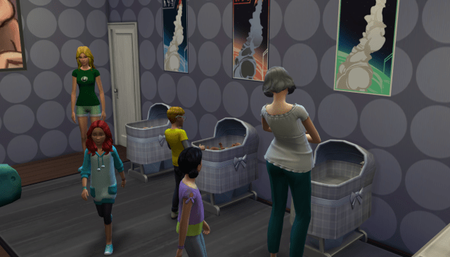Anyway, I was hoping to keep things normal (even with that mod!) but now the house has EIGHT CHILDREN. I’ll have to do some moving around to relatives to change clothes (SO ANNOYING). But, I do think it’s time that I let go of Maddox and Nade. They will not be getting a reprieve this time. Aya, on the other hand, will be sticking around until the end. I can chalk it up to the long life trait. She’ll move back in with her daughter at the lovely house in Oasis Springs.