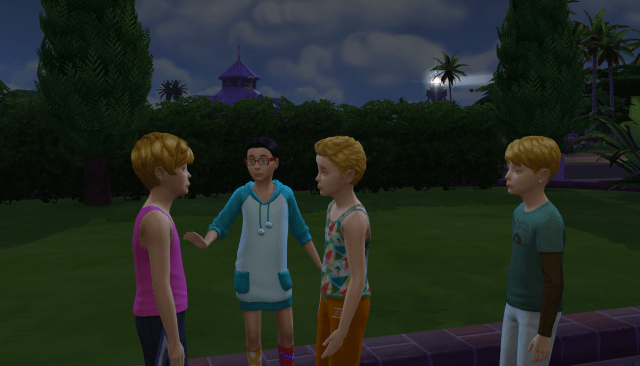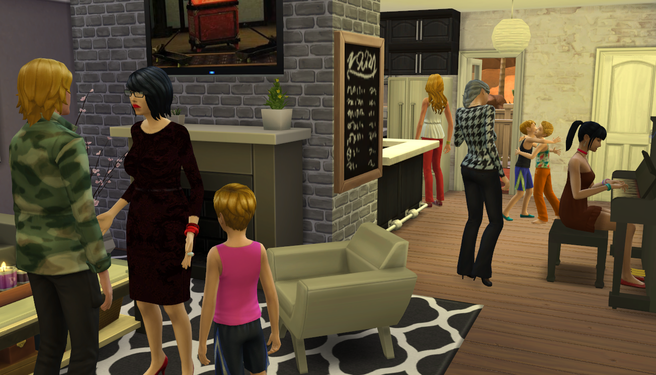 After a day or so, things started getting back to normal. The family was still blue but they were able to let their “beautiful home” moodlets take over for a while so they could think about something else for a bit. Even Aya’s grandaughter, Cara, came over for a play date and met all her “cousins” (whatever they’re actually called is beyond me).