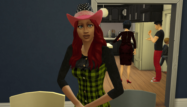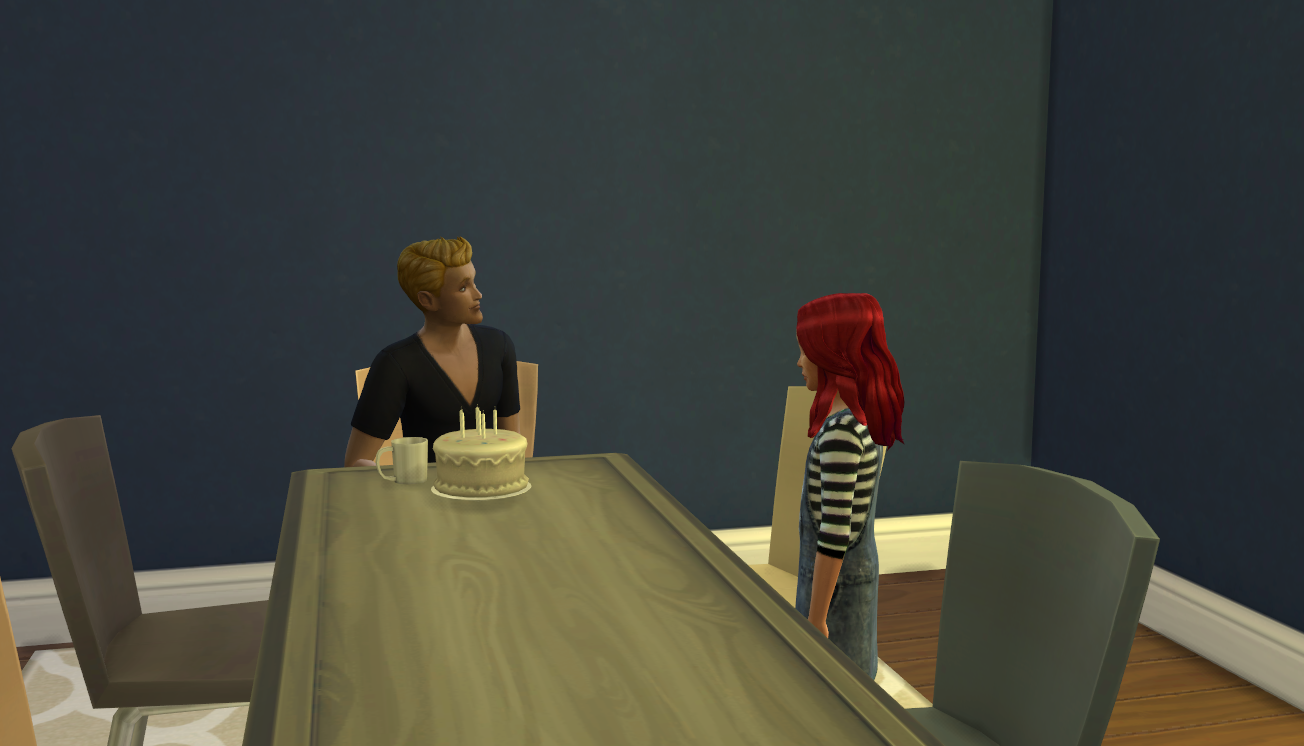 Aya started to make a cake to help her daughter out but realized, too late, that there was already a cake in the oven (no fire? Come on, game!). She finished that cake but by that time it was too late and Lea was suddenly an elder. She still looks good!