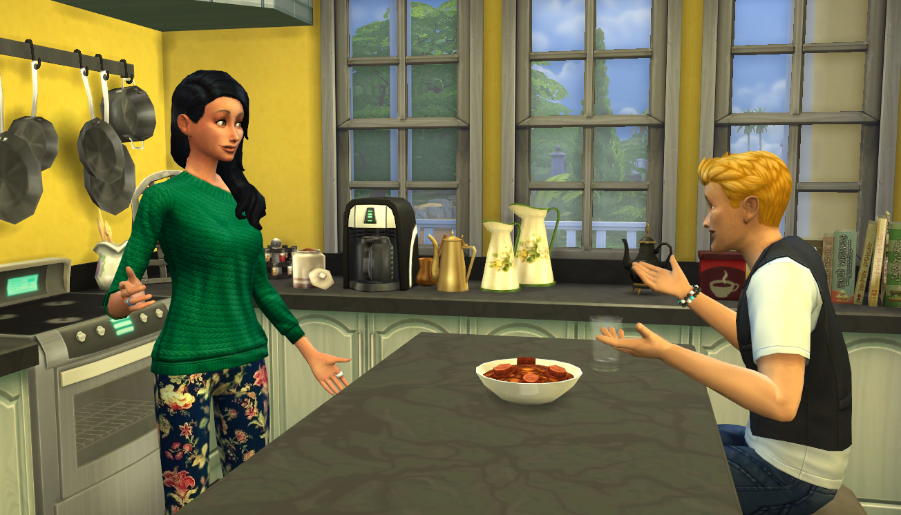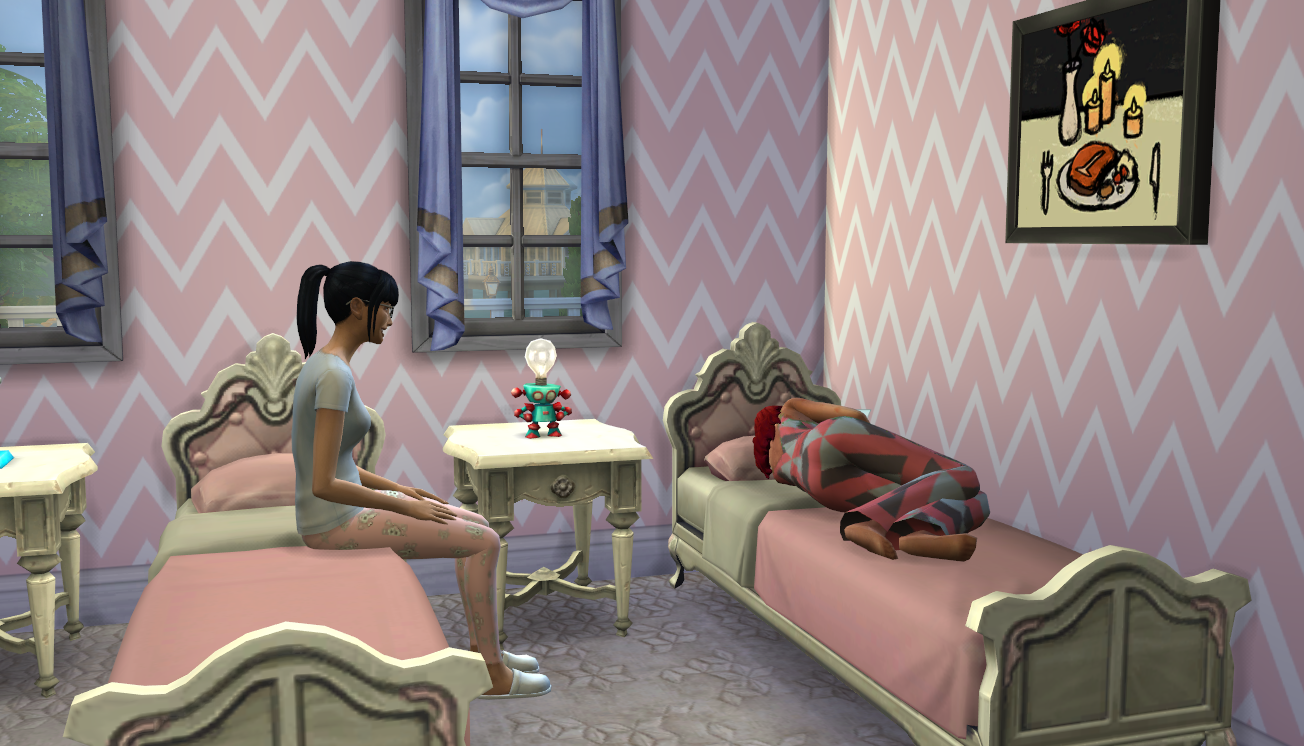 Once Sami hit young adult (and rolled evil, for goodness sake!), she and Kendrick really hit it off. They’re just good together. Kendrick is a glutton and Sami loves to bake so I don’t see how things could be better for the two of them. Also, Sami is the only person Kendrick has chosen to “share melancholy thoughts” with (since he’s a gloomy sim).