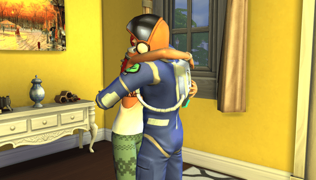 Right after that it came time for him to age into a buff silver-haired hunk! (He’s seriously so huge. His formalwear looks so weird on him!) I’m a little worried about his future in the astronaut career because the daily requirement is a workout and, even as a healthy elder, he’s not safe from the triangle warning of doom.