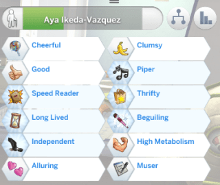 OH! ONE MORE THING! When I moved Cecil in he had an aspiration goal of mansion baron (which we completed several generations ago) and he completed an entire aspiration without doing a darn thing! Hooray! Because of that, I decided to let Aya have a go at it, adding yet another trait. She became the first sim of mine to become “the most interesting sim in the world” with twelve traits! (She did buy several of them but that’s besides the point!)