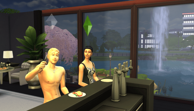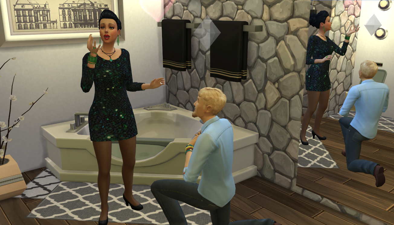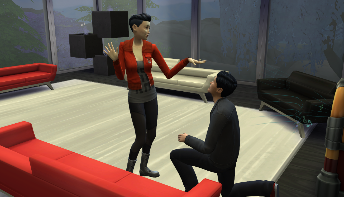 They moved into a huge house in Newcrest. It overlooks the lake/river/whatever and is next to a little park. I thought that things were going really well for them so Cecil rolled the wish to propose (he really did!)