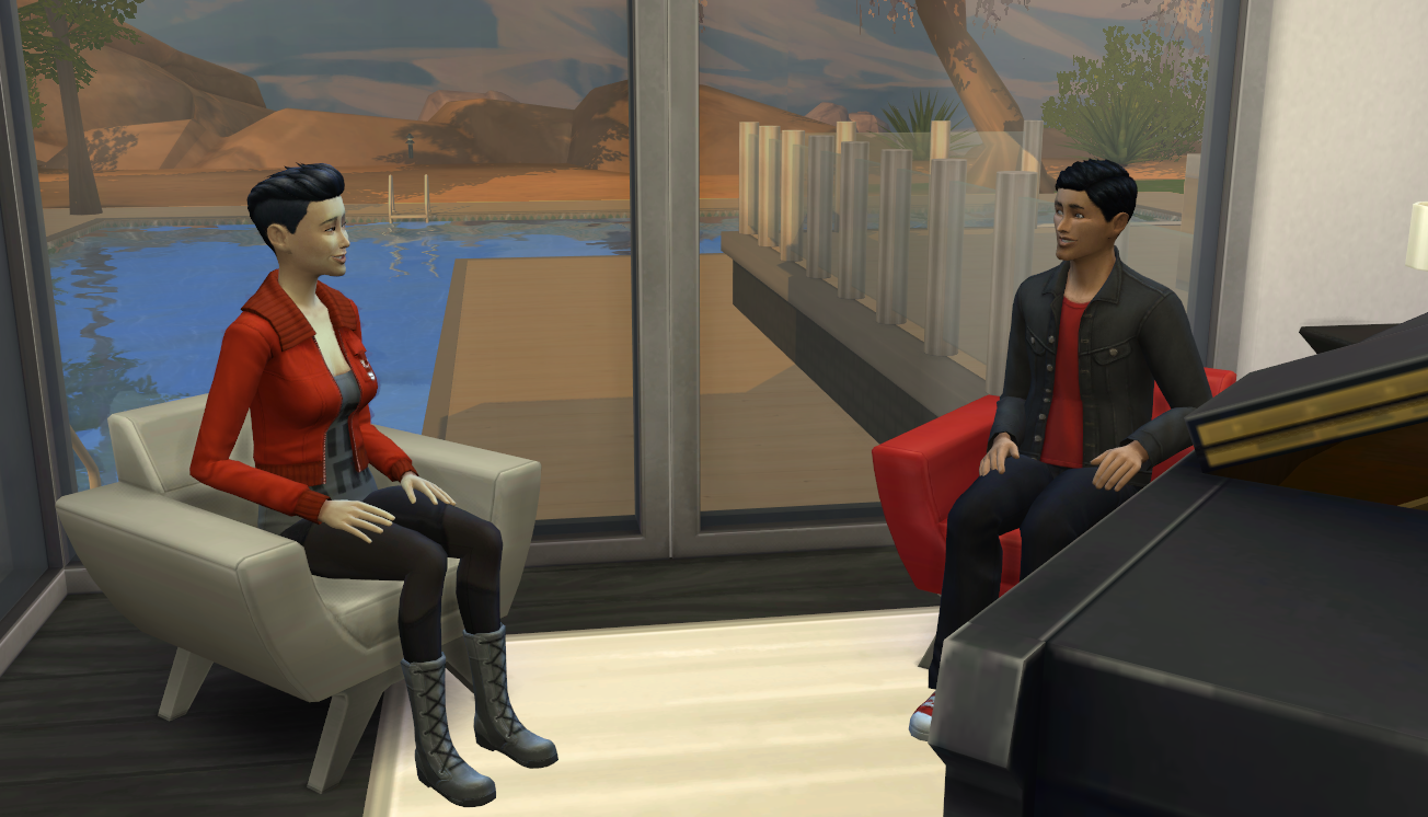 I’d seen her in the manage households screen and really liked her look. A little androgynous, different, red to match Tomio’s look. They hit it off IMMEDIATELY. So quick. She’s romantic, good, and lazy. She’s lazy! Just like Tomio!