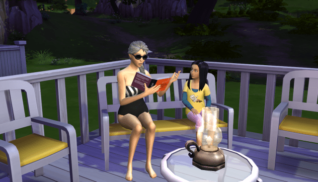 Aya took a break from her swimming to help Chiyo read a book. I told her to take off her sunglasses because A) it was nighttime, and B) how could she read with those on?! She didn’t listen.