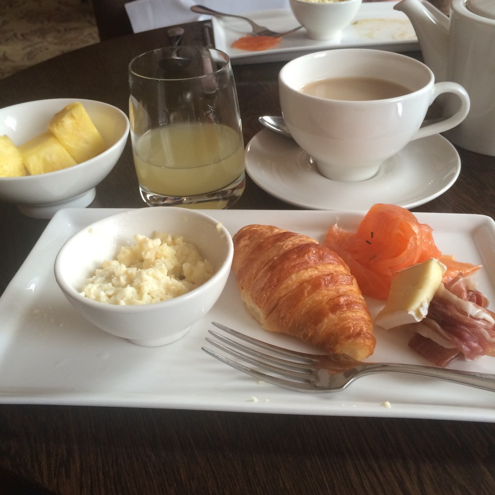 Our room wasn’t ready yet so we were ushered to the Chamber’s Club (fancyyyy) where they had breakfast food we could have. NinjaPig missed breakfast that morning so she jumped at the chance. I did, too, because they brought me tea AND they had salmon.