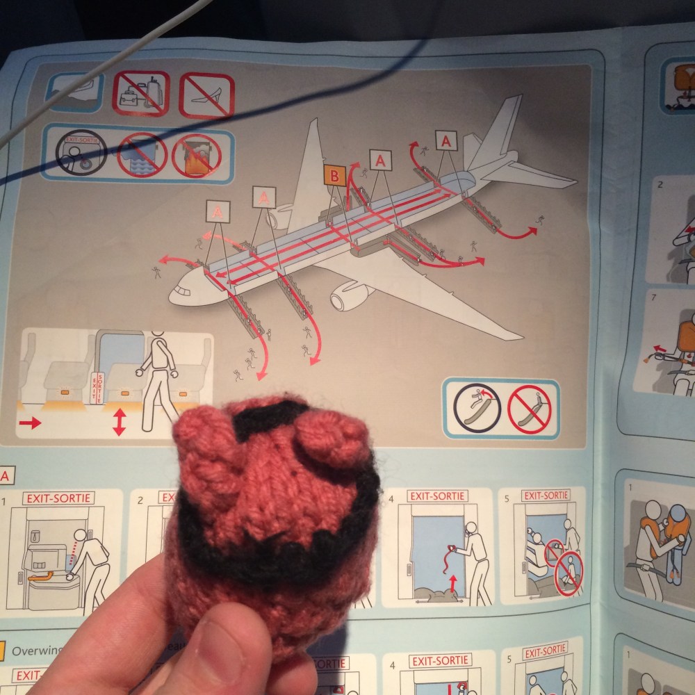 Finally, it was time to board and head towards Montreal. NinjaPig helped make sure she knew how to evacuate us in case of emergency. She said that wouldn’t be necessary, of course, because she knew how to fly the airplane.