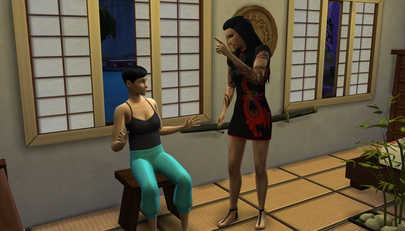 Jana moved towards the door and Suzu rounded on her. “Jana! Sit down!” Jana reluctantly sat on the bench near the window and waited for the next round of shouting. Suzu then put her head in her hands, the only sound from the frogs in the pond outside. Lifting her head, she pointed towards the door. “Phoenix, go to your quarters. We will discuss this in the morning…” Phoenix got up and quickly left the room. Suzu then turned to Jana who sat with a worried expression on her face.