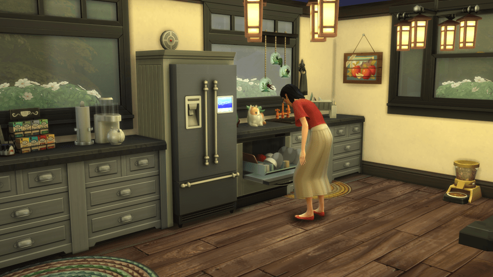 The family I sort of had in mind was Johnny Zest, his wife, Miyo, their daughters Kaila and Poppy, and beagle Napoleon. It was raining when I took these photos but I don’t mind – there was a nice fire in the fireplace and it just makes it feel a little more cozy!